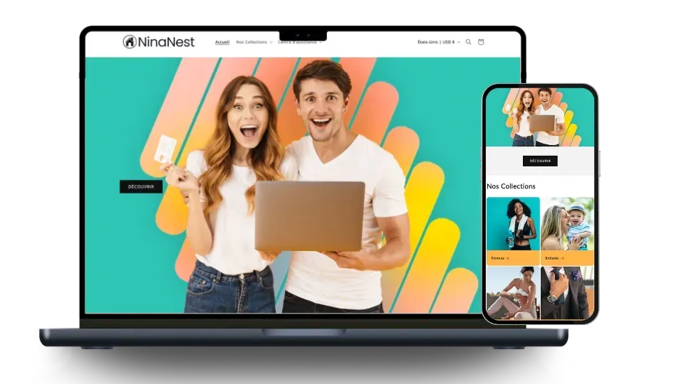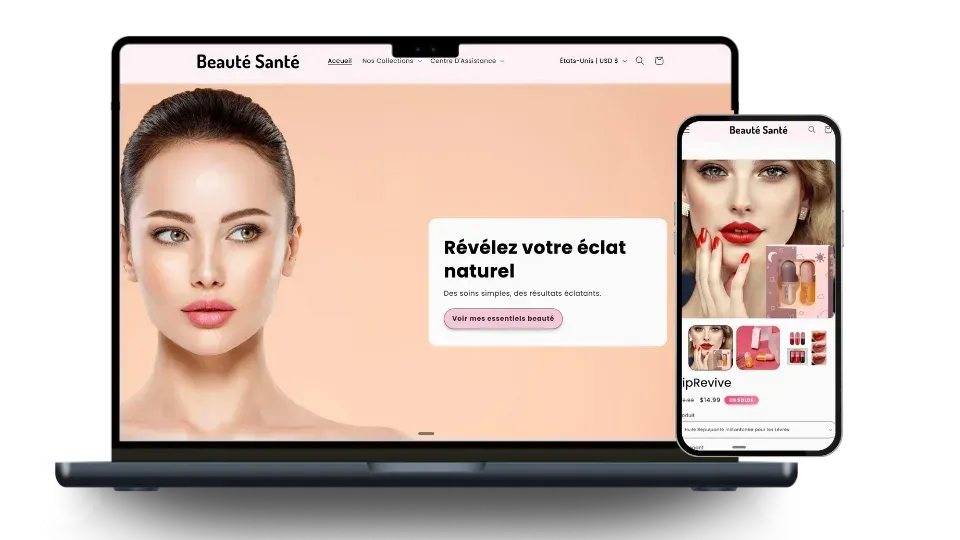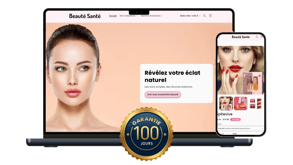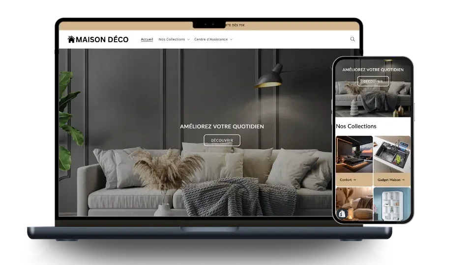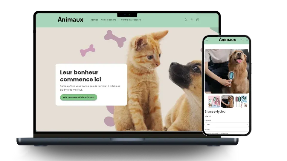 Une boutique moderne, optimisée pour mobile, prête à recevoir des commandes dès le jour 1.