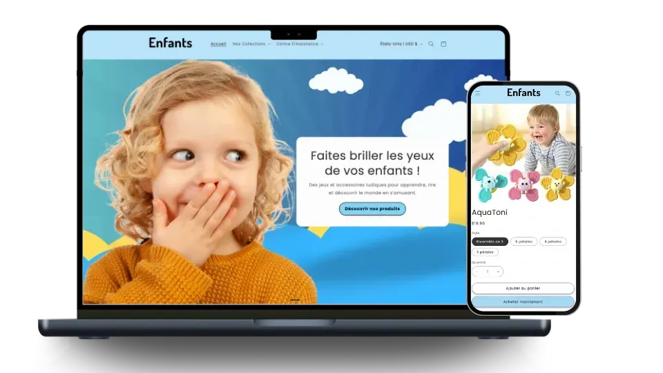 Depuis 2018, j'ai aidé 15,000+ parents francophones à lancer leur boutique en ligne.